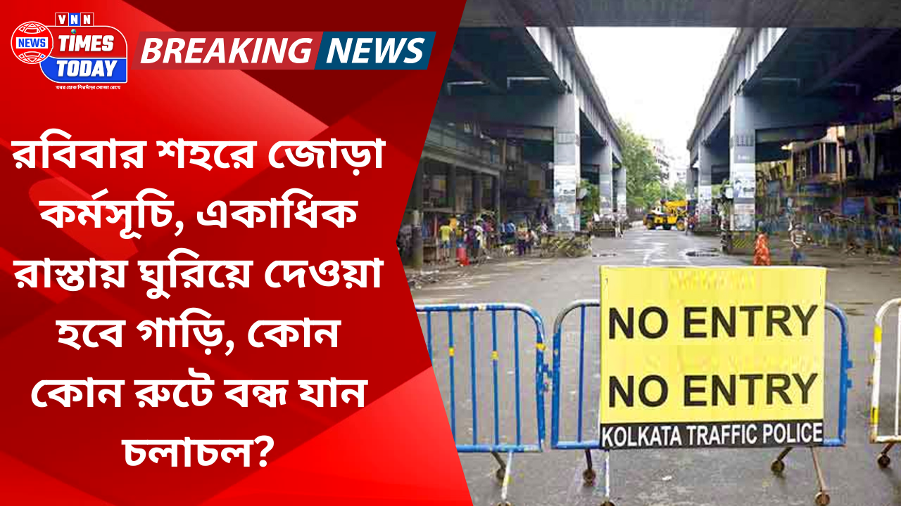 সাধারণ যানবাহন নয়, পণ্যবাহী গাড়ি চলাচল বন্ধ রাখা হবে বেশ কিছু এলাকায়। ভোর ৪টে থেকেই লেনিন সরণি থেকে এজেসি বোস রোড ক্রসিং পর্যন্ত জওহরলাল নেহরু রোডে মালবাহী গাড়ির চলাচল বন্ধ থাকবে।