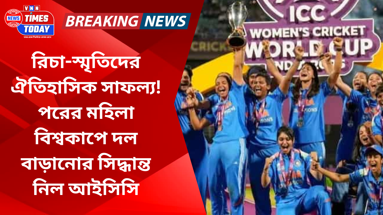 রিচা-স্মৃতিদের ঐতিহাসিক সাফল্য! পরের মহিলা বিশ্বকাপে দল বাড়ানোর সিদ্ধান্ত নিল আইসিসি November 8, 2025 No Comments